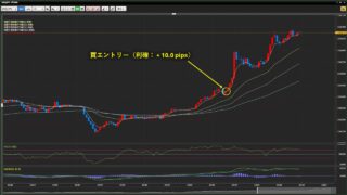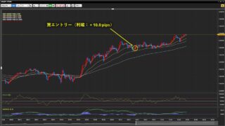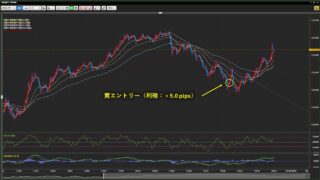 取引通貨:USD/JPYロット数:4損益:+ 5.0 pips (+ 2,000円)資産:272,000 → 274,000円本日勝敗:1勝1敗0分通算成績:7勝1敗0分