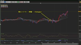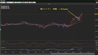取引通貨:USD/JPYロット数:4損益:+ 5.0 pips (+ 2,000円)資産:272,000 → 274,000円本日勝敗:1勝1敗0分通算成績:7勝1敗0分