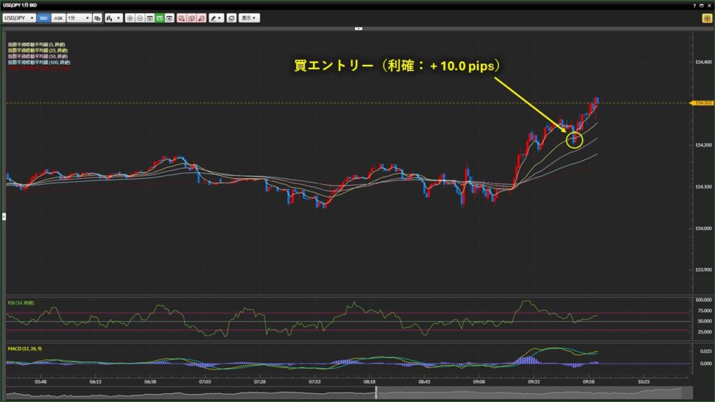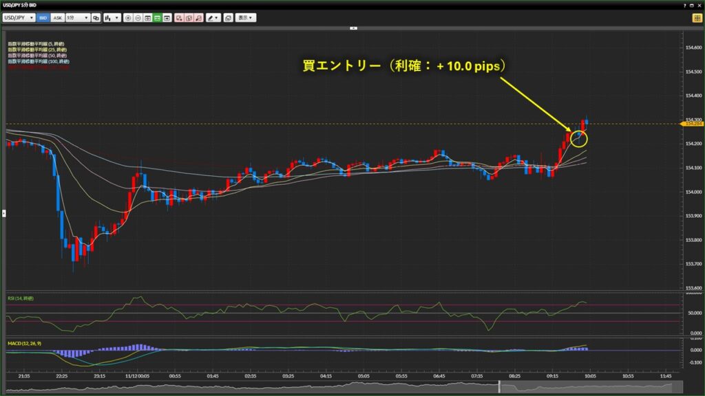 【00004】2025/11/12 ② 利確(通算:4勝0敗0分) 2025年11月 2025.11.18 2025.11.12 【取引結果】 取引通貨:USD/JPYロット数:4損益:+ 10.0 pips (+ 4,000円)資産:262,000 → 266,000円本日勝敗:2勝0敗0分通算成績:4勝0敗0分