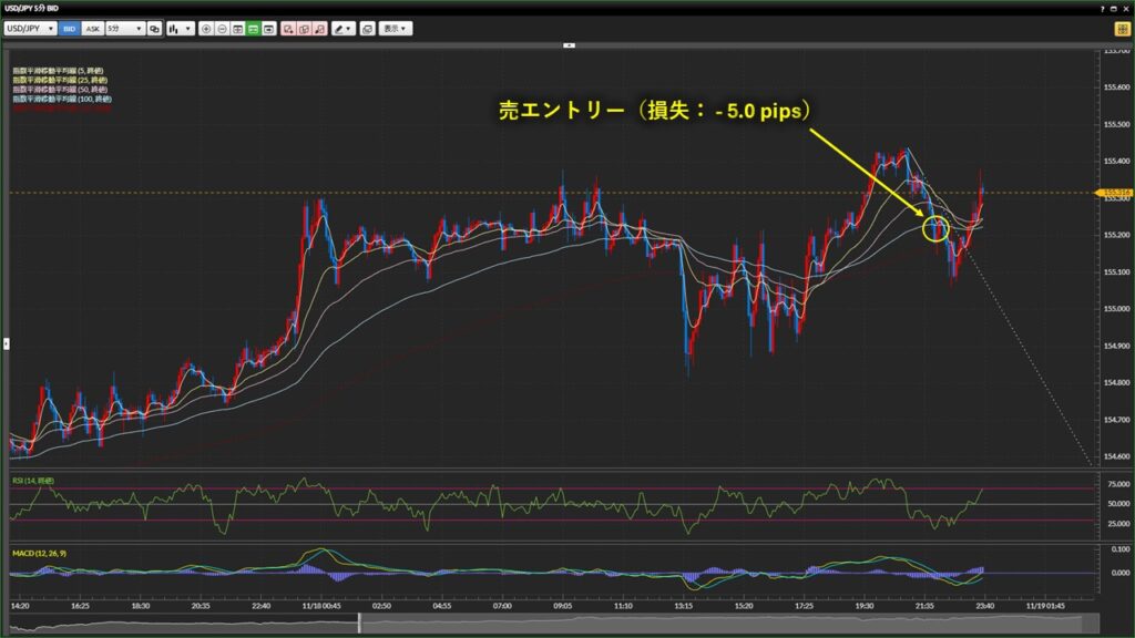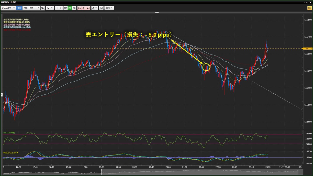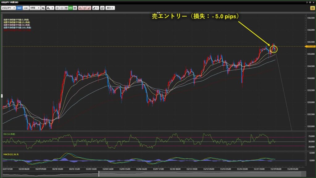 【00007】2025/11/18 ① 損失(通算:6勝1敗0分) 2025年11月 2025.11.18 【取引結果】 取引通貨:USD/JPYロット数:4損益:- 5.0 pips (- 2,000円)資産:274,000 → 272,000円本日勝敗:0勝1敗0分通算成績:6勝1敗0分
